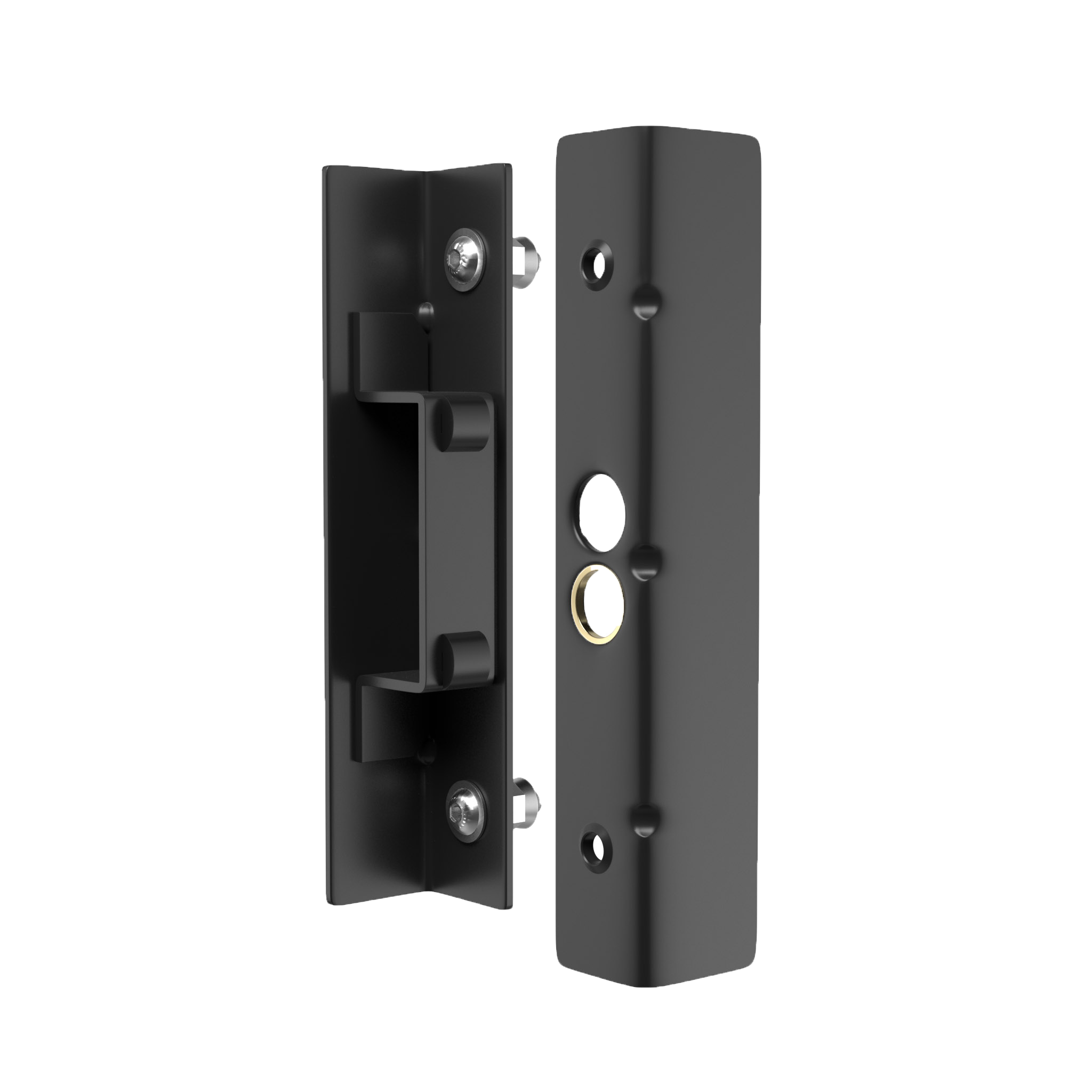 The secure keep from Gatemaster, the BSK, includes a slam plate for the post and a bolt support plate to be mounted on the frame. As you can imagine, this keep therefore needs more space than a strike plate.